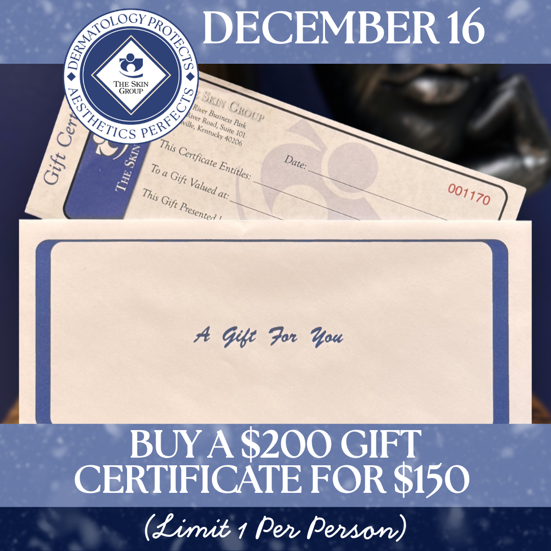 Black Friday just got better! 🖤 From Nov. 19–26, buy a $200 gift certificate for just $150 (Limit one per person). Give the gift of glowing skin to family, friends, or YOURSELF!